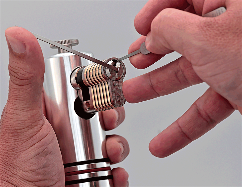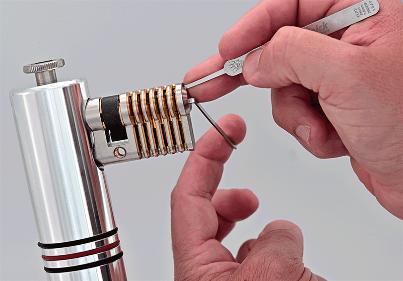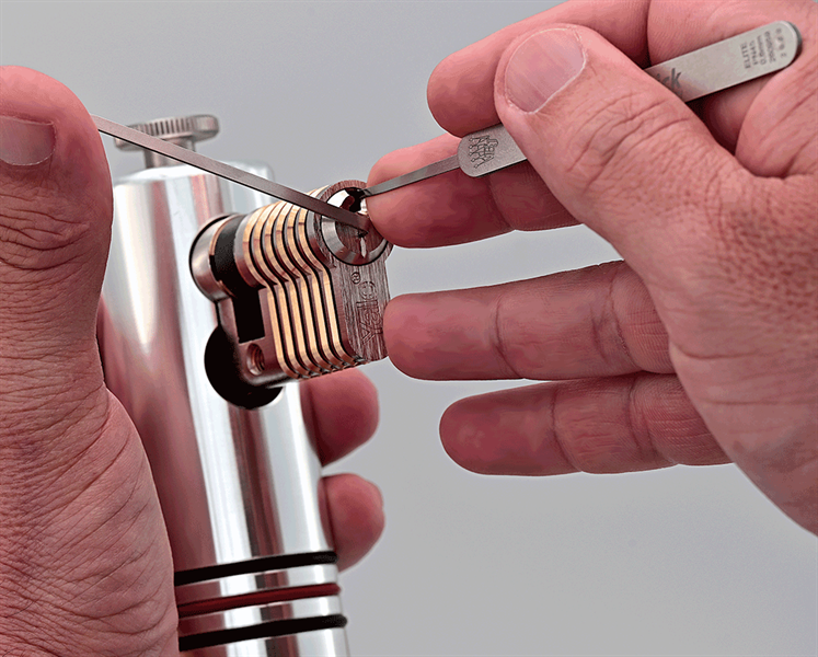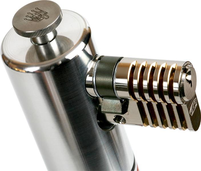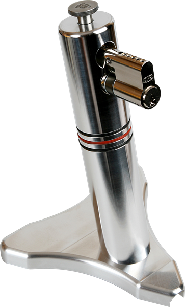 Der Centurion ist ein neues, erweitertes Produkt der Marke ©Multipick und wird mit Hilfe modernster CNC-Fräsmaschinen aus hochwertigem Flugzeugaluminium hergestellt. Der Centurion ist „die“ Hightech-Aufnahme der nächsten Generation. Das geniale Design in Verbindung mit einer hochwertigen Oberfläche lässt den Centurion immer gut aussehen. Der elegante und massive aus dem Vollen gefräste Fuß sorgt für einen sicheren und festen Stand. Durch die kleinen Gumminoppen auf der Unterseite ist der Centurion auf fast allen Oberflächen gegen Verrutschen beim Picken gesichert. Sollte es aber dennoch einmal zu extremen Pickattacken kommen, kann man ihn zusätzlich mit der mitgelieferten Tischzwinge am ungewollten Verrutschen hindern. Die neue Einfräsung der Zylinderaufnahme ist passgenau für alle Euro-Profilzylinder gefräst und weist nur minimales Spiel auf. Zusätzlich wird der Zylinder auf der Oberseite durch eine Rändelschraube gesichert – hier verrutscht nichts mehr und man kann sich voll auf den Zylinder und dessen Öffnung konzentrieren.